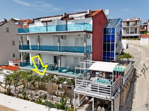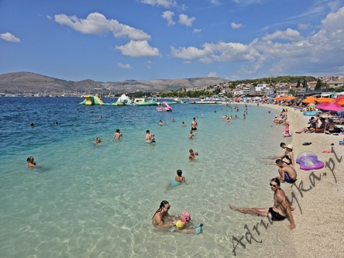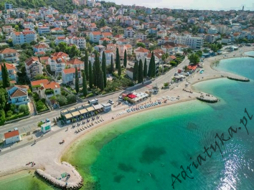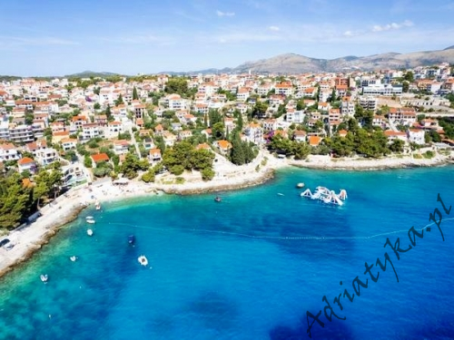 Cena od: 25€ za dobę* * podana cena jest ceną minimalną. Pełny cennik na dole oferty. Informacje dotyczące kwatery Ładny apartament (30 m²) w którym może być zakwaterowane do 3 osób, kategoria ***, niski parter, klimatyzacja, ogrzewanie, TV, TV-SAT, internet, jacuzzi (4 m²), basen dla dzieci (8 m²), sypialnia z kuchnią i z pokojem dziennym (wyjście na taras), łazienka, pralka, żelazko, deska do prasowania, suszarka do ubrań, duży i zadaszony taras (13 m²), częściowy widok na morze, stół i krzesła na tarasie, leżak, prysznic ogrodowy, prywatny parking, palenie wewnątrz apartamentu nie jest dozwolone. Wyposażenie kuchni: naczynia do przygotowywania i serwowania jedzenia i napojów, sztućce w odpowiedniej ilości, lodówka (76 L), zamrażarka (8 L), elektryczna kuchnia, toster, czajnik elektryczny, pochłaniacz powietrza (okap kuchenny). Wyposażenie łazienki: kompletne, kabina z prysznicem. Dostęp do pralki na życzenie (usługa płatna, 10€ za jedno pranie). Żelazko, deska do prasowania: dostęp na życzenie, po uzgodnieniu z właścicielem. Zwierzęta domowe mile widziane (dodatkowo płatne, 50€ za dobę). Informacje o pokojach Ilość pokoi: 1, łączna liczba łóżek w pokoju: 2, liczba łóżek dwuosobowych: 1, liczba łóżek jednoosobowych: 1 (rozkładana sofa). Odległości Odległość do przystanku autobusowego 200 m, odległość do stacji kolejowej 14 km (Kastela), odległość do najbliższego portu lotniczego 8 km Split (Trogir), odległość do przystani promowej 40 km (Split), odległość do hałaśliwej (ruchliwej) ulicy 2 km, odległość do kantoru 5 km, odległość do bankomatu 500 m, odległość do restauracji 150 m, odległość do sklepu 150 m, odległość do stacji benzynowej 6 km. PlażaNajbliższa żwirowa / kamienista plaża oddalona jest od obiektu o 170 m, odległość do morza wynosi około 70 m. W najbliższym sąsiedztwie apartamentu (około 80 m) znajduje się plaża skalista i z betonowymi płytami (tarasami). W najbliższej okolicy znajduje się wiele innych, bardzo ładnych plaż. Inne uwagi Apartament znajduje się na niskim parterze bardzo ładnego, dużego budynku. Goście mają do dyspozycji jacuzii, basen dla dzieci, internet, duży (zadaszony) taras z częściowym widokiem na morze i sąsiednie budynki, stół i krzesła na tarasie, leżak, prysznic ogrodowy, grill oraz prywatny parking. Wymiana pościeli i ręczników co 7 dni. Obiekt posiada miejsce do cumowania łodzi (w cenie wynajmu). Cennik