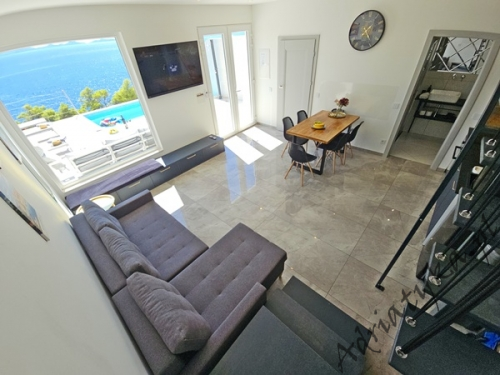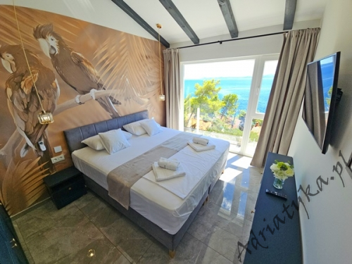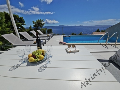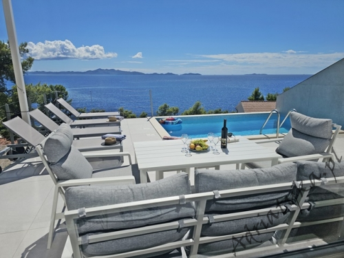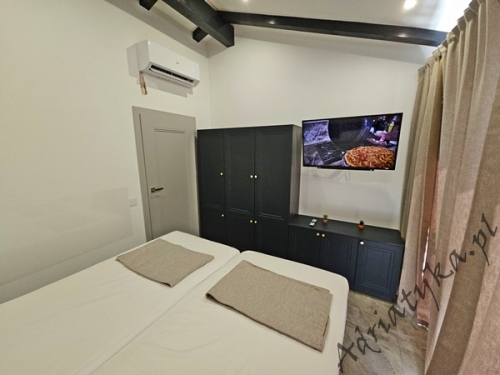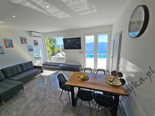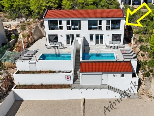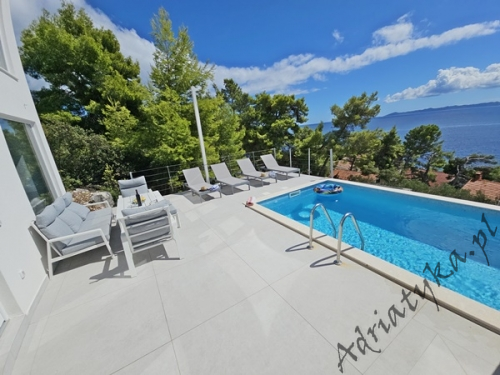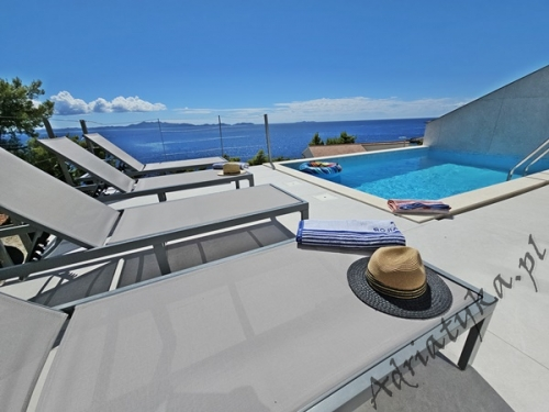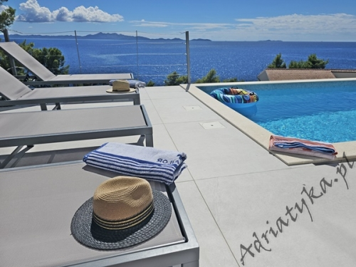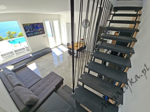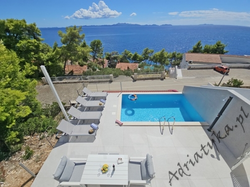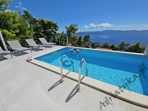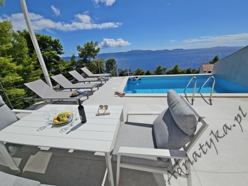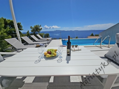 Cena od: 170€ za dobę* * podana cena jest ceną minimalną. Pełny cennik na dole oferty. Informacje dotyczące kwatery Luksusowy, bardzo ładny dom (75 m²) w którym może być zakwaterowane do 8 osób, kategoria ****, parter / pierwsze piętro, basen (15 m²), klimatyzacja x 3, TV x 3, internet, trzy sypialne, bardzo duży pokój dzienny połączony z kuchnią i jadalnią (wyjście taras), dwie łazienki, pralka, suszarka do ubrań, żelazko, deska do prasowania, suszarka do włosów, prywatny parking, grill, bardzo duży tarasy (45 m², obok basenu) z pięknym widokiem na morze, leżaki, parasole, prysznic ogrodowy, meble ogrodowe, stół i krzesła na tarasie, palenie wewnątrz domu nie jest dozwolone (palenie jest preferowane na tarasie). Wyposażenie kuchni: naczynia do przygotowywania i serwowania jedzenia i napojów, sztućce w odpowiedniej ilości, zmywarka, lodówka (169 L), zamrażarka (37 L), elektryczna kuchnia, piekarnik, ekspres do kawy, toster, pochłaniacz powietrza (okap kuchenny). Wyposażenie łazienek: kompletne, kabina z prysznicem. Informacje o pokojach Ilość pokoi: 3 + duży pokój dzienny, łączna liczba łóżek w pokojach: 6, liczba łóżek dwuosobowych: 2, (w tym jedno łóżko, które znajduje się w pokoju dziennym, rozkładana sofa), liczba łóżek jednoosobowych: 4 (w tym jedno rozkładane, dostępne na życzenie). Odległości Odległość do przystanku autobusowego 7 km, odległość do stacji kolejowej 240 km (Split), odległość do najbliższego portu lotniczego 250 km Split (Trogir), odległość do przystani promowej 26 km (Vela Luka), odległość do hałaśliwej (ruchliwej) ulicy 3 km, odległość do kantoru 14 km, odległość do bankomatu 3 km, odległość do restauracji 1200 m, odległość do sklepu spożywczego 3 km, odległość do najbliższej stacji benzynowej 6 km. PlażaBardzo ładna żwirowa i kamienista plaża, oddalona od obiektu o 1200 m, odległość do morza wynosi 70 m. W najbliższej okolicy znajduje się wiele innych, bardzo ładnych plaż. Inne uwagi Zrelaksuj się w naszej luksusowej willi położonej w sercu słonecznej Dalmacji na wyspie Korčula. Dom oferuje wszystko, czego potrzebujesz, aby spędzić niezapomniane wakacje: prywatny basen z krystalicznie czystą wodą, przestronny taras z pięknym widokiem na morze i eleganckie wnętrza urządzone w nowoczesnym stylu. Idealne miejsce dla rodzin lub grup przyjaciół, które marzą o relaksie w spokojnej okolicy. Wymiana pościeli i ręczników co 7 dni. Cennik
