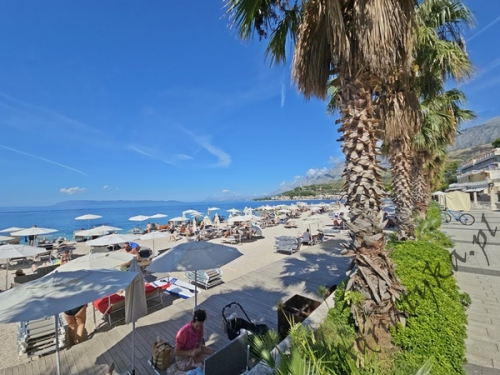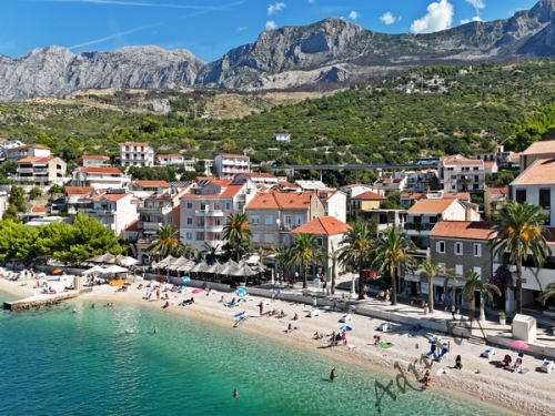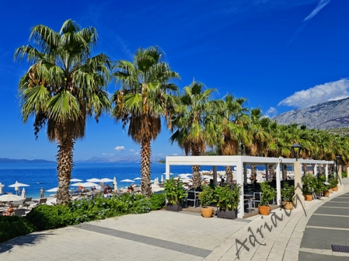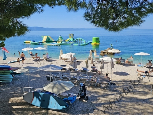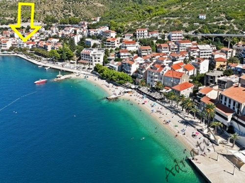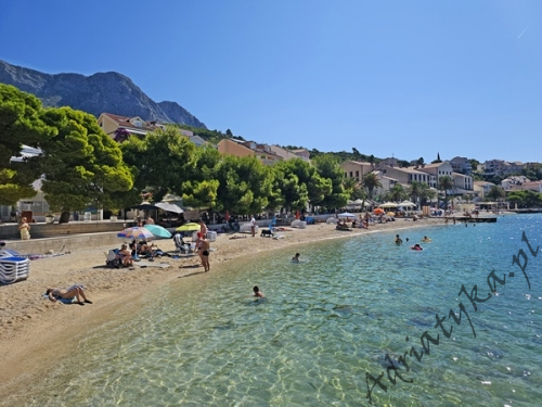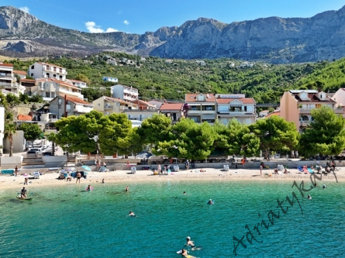 Cena od: 35€ za dobę* * podana cena jest ceną minimalną. Pełny cennik na dole oferty. Informacje dotyczące kwatery Ładny apartament (35 m²) w którym może być zakwaterowane do 4 osób (2 osoby dorosłe + 2 dzieci do 12 lat), kategoria **, drugie piętro, klimatyzacja, internet, TV (plazma), TV-SAT, jedna sypialnia (wyjście na taras), pokój dzienny połączony z kuchnią (wyjście na taras), łazienka, duży taras (12 m²), stół i krzesła na tarasie, parking, palenie w apartamencie jest dozwolone (preferowane jest palenie na tarasie). Wyposażenie kuchni: naczynia do przygotowywania i serwowania jedzenia i napojów, sztućce w odpowiedniej ilości, mikrofalówka, elektryczna kuchnia, lodówka (130 L), zamrażarka (15 L), pochłaniacz powietrza (okap kuchenny). Wyposażenie łazienki: kompletne, kabina z prysznicem, pralka. Suszarka do ubrań, żelazko, deska do prasowania: dostęp na życzenie, po uzgodnieniu z właścicielem. Zwierzęta domowe mile widziane (usługa dodatkowo płatna 5€ za dobę). Na miejscu znajduje się restauracja, która serwuje różnorodne dania kuchni chorwackiej, a także dania wegańskie i wegetariańskie. Dla gości wynajmujących ten apartament całodobowe wyżywienie dla jednej osoby kosztuje 23€. Same śniadania 7€ od osoby dziennie. Informacje o pokojach Ilość pokoi: 1 + pokój dzienny, łączna liczba łóżek w pokojach: 2, liczba łóżek dwuosobowych: 2 (w tym jedno łóżko znajduje się w pokoju dziennym, rozkładana sofa). Odległości Odległość do przystanku autobusowego 20 m, odległość do stacji kolejowej 70 km (Split), odległość do najbliższego portu lotniczego 70 km Split (Trogir), odległość do przystani promowej 5 km, odległość do hałaśliwej (ruchliwej) ulicy 400 m, odległość do kantoru 100 m, odległość do bankomatu 10 m, odległość do restauracji 0 m, odległość do sklepu 10 m, odległość do najbliższej stacji benzynowej 500 m. PlażaBardzo ładna kamienista i żwirowa plaża, oddalona od obiektu o 100 m, odległość do morza wynosi 30 m. W najbliższej okolicy znajduje się wiele innych, bardzo ładnych plaż. Inne uwagi Apartament znajduje się na drugim piętrze ładnego domu. Budynek usytuowany jest około 30 m od morza. Goście mają do dyspozycji internet, parking, duży taras z widokiem na masyw górski Biokovo oraz na sąsiednie budynki, stół i krzesła na tarasie. Wymiana pościeli i ręczników co 7 dni. Internet: usługa wliczona w cenę wynajmu. Cennik