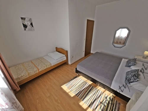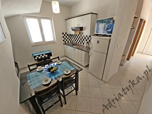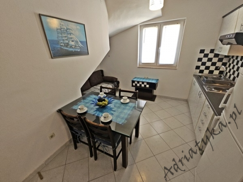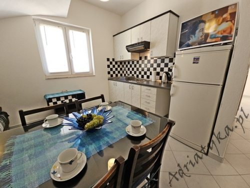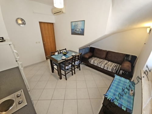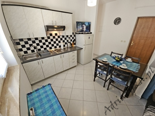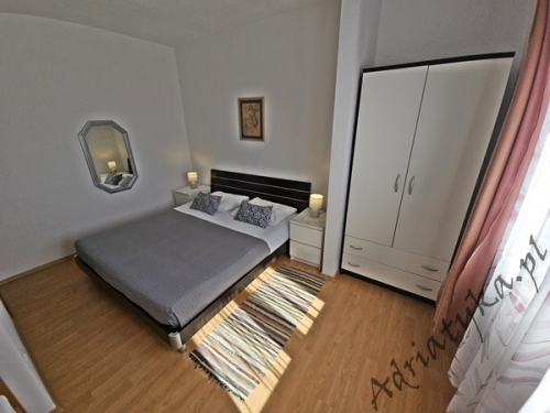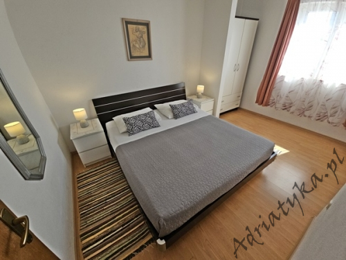 Price from: 35€ per night* * The price is the minimum price. Full price list at the bottom of the offer Information on the accommodation Very nice apartment (31 m² ) in which can be accommodated up to 4 people (2 adults + 2 children), category ***, second floor, TV, TV-SAT, internet, air conditioning, one bedroom, nice living room connected with kitchen (exit to the terrace), nice bathroom, washing machine, iron, ironing board, clothes dryer, covered terrace (9 m²) with beautiful view of the sea and neighbouring buildings, table and chairs on the terrace, grill, private parking, garage, smoking is allowed in the apartment. Kitchen equipment: kitchen utensils and tableware according to the number of persons, fridge (126 L), freezer (15 L), electric kitchen, electric kettle, air absorber (cooker hood). Bathroom equipment: complete, shower. Washing machine, iron, ironing board: available on request, after agreement with the owner. Room information Number of rooms: 1 + living room, the total number of beds in rooms: 3, number of double beds: 1, number of single beds: 2 (including sofa bed located in the living room). Distances Distance to the bus stop is 200 m, distance to the train station is 25 km (Split), distance to the nearest airport is 45 km (Split), distance to the nearest ferry port is 25 km (Split), distance to the main road is 100 m, distance to the nearest exchange bureau is 1 km, distance to the cash point is 1 km, distance to the restaurant is 100 m, distance to the grocery store is 130 m, distance to the petrol station is 1.1 km. BeachVery nice sandy beach, distance to the beach is 120 m, distance from the sea is 140 m. Other informations The apartment is located on the second floor of very nice, large building. Guests have at their disposal internet, covered terrace with beautiful view of the sea and neighbouring buildings, grill, private parking or garage. Pricing