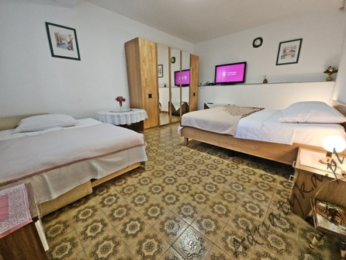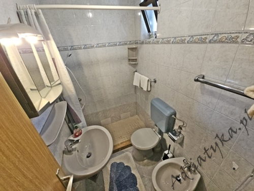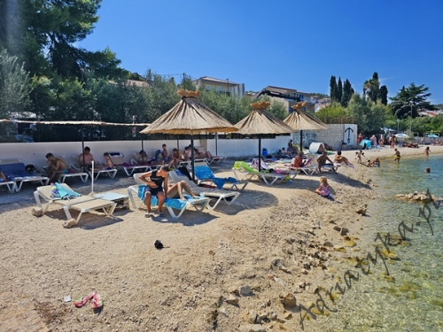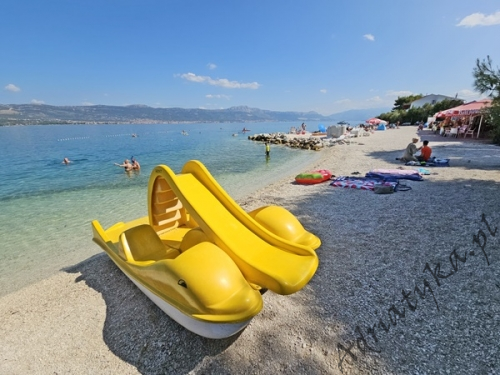 Cena od: 35€ za dobę* * podana cena jest ceną minimalną. Pełny cennik na dole oferty. Informacje dotyczące kwatery Ładny apartament (50 m²) w którym może być zakwaterowane do 4 osób, kategoria ***, parter, centralne ogrzewanie, internet, TV, TV-SAT, jedna sypialnia, kuchnia z jadalnią, łazienka, pralka, żelazko, deska do prasowania, suszarka do ubrań, taras (15 m²), stół i krzesła na tarasie, grill, prywatny parking, palenie w apartamencie nie jest dozwolone (preferowane jest palenie na tarasie). Wyposażenie kuchni: naczynia do przygotowywania i serwowania jedzenia i napojów, sztućce w odpowiedniej ilości, zmywarka, duża lodówka (174 L), zamrażarka (57 L), gazowo-elektryczna kuchnia, piekarnik, czajnik elektryczny, ekspres do kawy, toster, pochłaniacz powietrza (okap kuchenny), mikrofalówka. Wyposażenie łazienki: kompletne, prysznic. Zwierzęta domowe mile widziane (usługa dodatkowo płatna 10€ za dobę). Informacje o pokojach Ilość pokoi: 1, łączna liczba łóżek w pokoju: 3, liczba łóżek dwuosobowych: 1, liczba łóżek jednoosobowych: 2. Odległości Odległość do przystanku autobusowego 100 m, odległość do stacji kolejowej 14 km (Kastela), odległość do najbliższego portu lotniczego 8 km Split (Trogir), odległość do przystani promowej 30 km (Split), odległość do hałaśliwej (ruchliwej) ulicy 10 m, odległość do kantoru 100 m, odległość do bankomatu 100 m, odległość do restauracji 100 m, odległość do sklepu 100 m, odległość do najbliższej stacji benzynowej 6 km. PlażaBardzo ładna kamienista / żwirowa plaża, oddalona od obiektu o 100 m, odległość do morza wynosi 50 m. W najbliższej okolicy znajduje się wiele innych, bardzo ładnych plaż. Inne uwagi Apartament znajduje się na parterze dużego i bardzo ładnego budynku. Dom znajduje się zaledwie 50 m od morza. Goście mają do dyspozycji internet, taras z widokiem na ogród i na sąsiednie budynki, stół i krzesła na tarasie, prywatny parking oraz gazowy grill na którym można przygotować rybne i mięsne specjały dalmatyńskiej kuchni przy kieliszku dobrego, domowego wina i rakiji. Wymiana pościeli i ręczników co 7 dni. Cennik