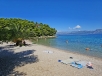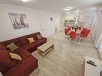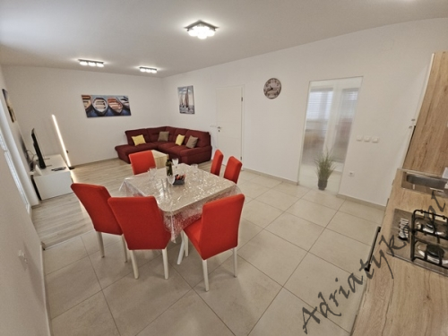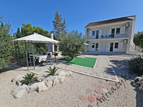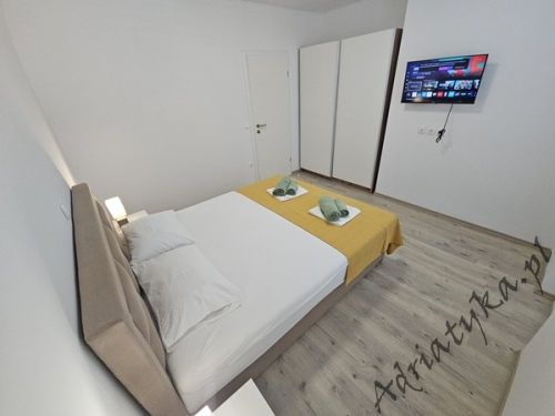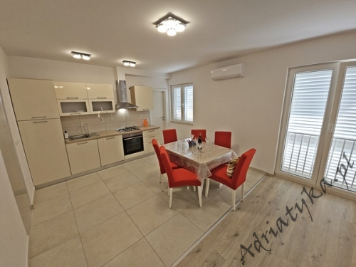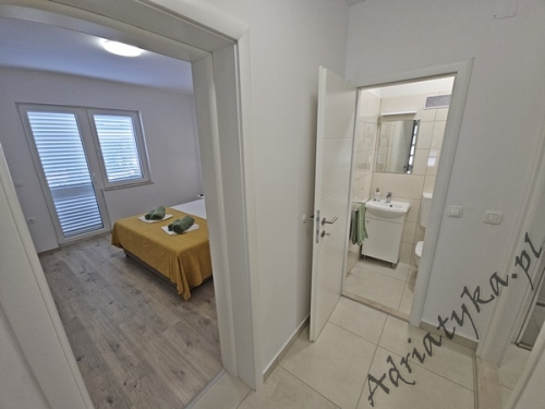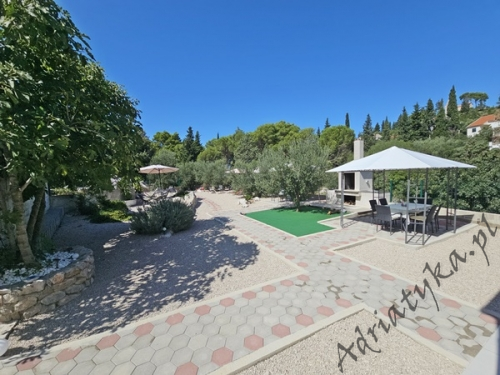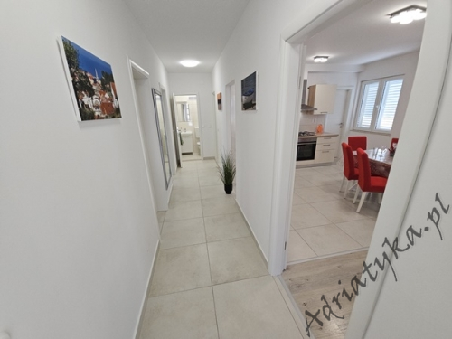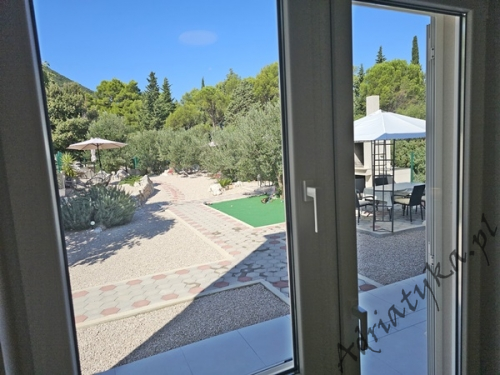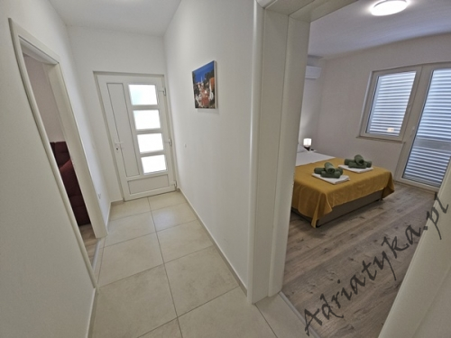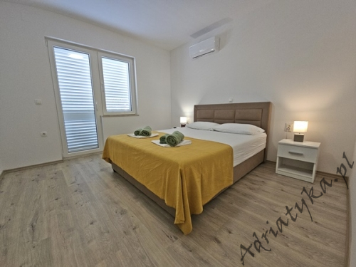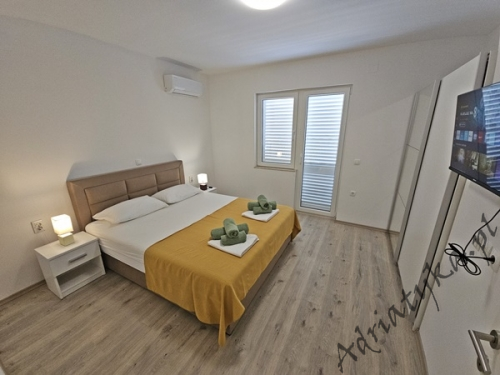 Cena od: 50€ za dobę* * podana cena jest ceną minimalną. Pełny cennik na dole oferty. Informacje dotyczące kwatery Bardzo ładny, duży apartament (75 m²) w którym może być zakwaterowane do 5 osób, kategoria ***, parter, potrójna klimatyzacja (w każdym pokoju), internet, TV x 3, TV-SAT, dwie sypialnie (obie z wyjściem na taras), ładna kuchnia połączona z jadalnią i pokojem dziennym, bardzo ładna łazienka, toaleta, korytarz, pralka, żelazko, deska do prasowania, suszarka na pranie, taras z dużym ogrodem (w sumie 300 m²), stoły i krzesła + leżaki na tarasie i w ogrodzie, meble ogrodowe, parasole, grill, prysznic ogrodowy, prywatny parking, palenie w apartamencie nie jest dozwolone (palenie jest dozwolone na tarasie lub w ogrodzie). Wyposażenie kuchni: naczynia do przygotowywania i serwowania jedzenia i napojów, sztućce w odpowiedniej ilości, zmywarka, elektryczno-gazowa kuchnia, duża lodówka (135 L), zamrażarka (35 L), czajnik elektryczny, mikrofalówka, ekspres do kawy, toster, piekarnik, okap kuchenny. Wyposażenie łazienki: kompletne, kabina z prysznicem, suszarka do włosów. Wyposażenie toalety: umywalka, sedes. Zwierzęta domowe mile widziane (usługa dodatkowo płatna 5€ za dobę). Informacje o pokojach Ilość pokoi: 2 + pokój dzienny, łączna liczba łóżek w pokojach: 3, łączna liczba łóżek dwuosobowych: 2, liczba łóżek jednoosobowych: 1 (łóżko znajduje się w pokoju dziennym, rozkładana sofa). Odległości Odległość do przystanku autobusowego 500 m, odległość do stacji kolejowej 140 km (Split), odległość do najbliższego portu lotniczego 160 km Split (Trogir), odległość do przystani promowej 300 m, odległość do hałaśliwej (ruchliwej) ulicy 500 m, odległość do kantoru 300 m, odległość do bankomatu 300 m, odległość do restauracji 200 m, odległość do sklepu 60 m, odległość do najbliższej stacji benzynowej 10 km. PlażaBardzo ładna żwirowa i kamienista plaża, oddalona od obiektu o 100 m, odległość do morza wynosi 120 m. W najbliższej okolicy znajduje się wiele innych, bardzo ładnych plaż. Inne uwagi Apartament znajduje się na parterze ładnego domu. Budynek usytuowany jest blisko od plaży (około 100 m). Goście mają do dyspozycji internet, taras z bardzo dużym ogrodem, stoły i krzesła + leżaki na tarasie i w ogrodzie, meble ogrodowe, parasole, prysznic ogrodowy, prywatny parking oraz murowany grill, na którym można przygotować rybne i mięsne specjały dalmatyńskiej kuchni przy kieliszku dobrego, domowego wina i rakiji. Internet: usługa wliczona w cenę wynajmu. Cennik