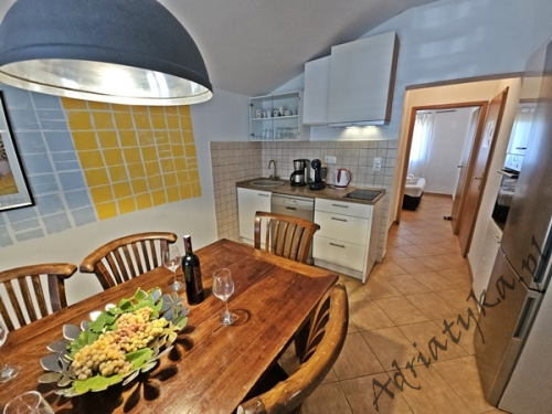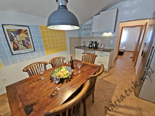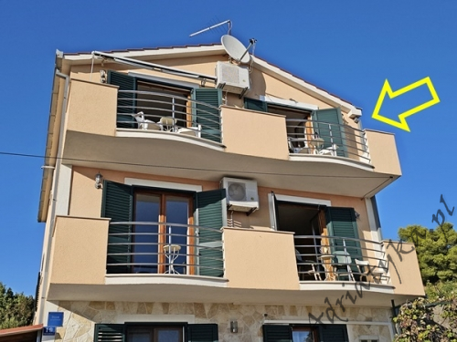 Apartament znajduje się na pierwszym piętrze ładnego domu. Goście mają do dyspozycji internet, prywatny parking, dwa balkony z piękny widok na morze, duży i zadaszony taras, stoły i krzesła na tarasie i balkonach oraz elektryczny grill na którym można przygotować rybne i mięsne specjały dalmatyńskiej kuchni przy kieliszku dobrego, domowego wina i rakiji.