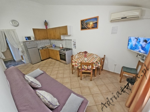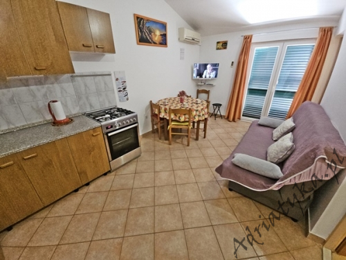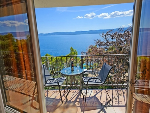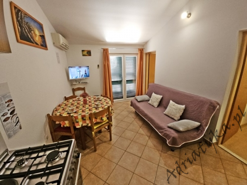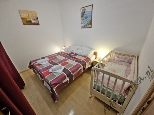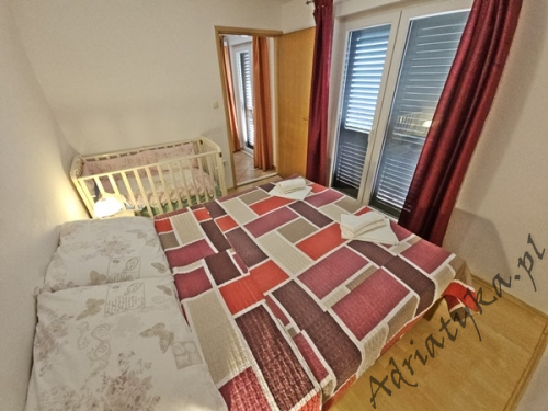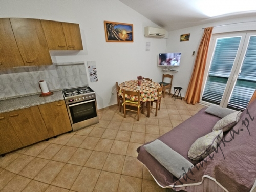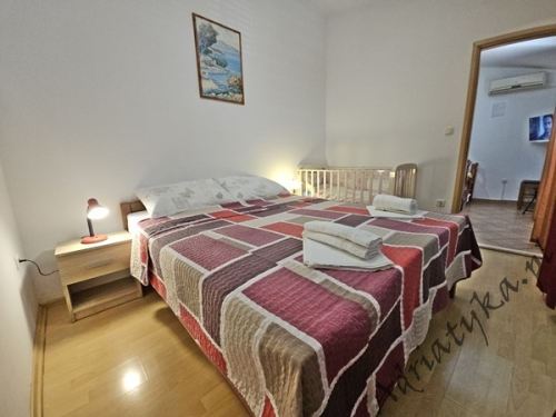 Cena od: 45€ za dobę* * podana cena jest ceną minimalną. Pełny cennik na dole oferty. Informacje dotyczące kwatery Bardzo ładny, duży apartament, znajdujący się w odległości około 50 m po prostej linii od morza w którym może być zakwaterowane do 5 osób, kategoria ***, drugie piętro, klimatyzacja, TV, TV-SAT, radio, internet, dwie sypialnie (w tym jedna z wyjściem na balkon), kuchnia, duży pokój dzienny z wyjściem na balkon, duża łazienka, balkon, stół i krzesła na balkonie, piękny widok na morze, prywatny parking, grill, palenie wewnątrz apartamentu jest dozwolone. Wyposażenie kuchni: naczynia do przygotowywania i serwowania jedzenia i napojów, sztućce w odpowiedniej ilości, lodówka, kuchnia elektryczno-gazowa, czajnik elektryczny, duża zamrażarka. Pralka: dostęp na życzenie, po uzgodnieniu z właścicielem. Informacje o pokojach Ilość pokoi: 2 + pokój dzienny, łączna liczba łóżek w pokojach: 3, liczba łóżek dwuosobowych: 2, liczba łóżek jednoosobowych: 1 (opcjonalnie, rozkładane). Odległości Odległość do przystanku autobusowego 150 m, odległość do stacji kolejowej 40 km (Split), odległość do najbliższego portu lotniczego 70 km Split (Trogir), odległość do przystani promowej 20 km (Makarska), odległość do hałaśliwej (ruchliwej) ulicy 40 m, odległość do kantoru 150 m (poczta), odległość do bankomatu 7 km (Omis), odległość do restauracji 80 m, odległość do sklepu 150 m, odległość do najbliższej stacji benzynowej 7 km. PlażaBardzo ładna żwirowa / kamienista plaża, oddalona od obiektu o 90 m, odległość do morza wynosi 50 m. Plaża piaszczysta znajduje się w odległości około 7 km od budynku (Omiš). Inne uwagi Apartament znajduje się na drugim (ostatnim) piętrze ładnego, usytuowanego blisko morza budynku (około 50 m). Goście mają do dyspozycji internet, prywatny parking, duży balkon z pięknym widokiem na morze, stół i krzesła na balkonie oraz murowany grill, gdzie można przygotować rybne i mięsne specjały dalmatyńskiej kuchni przy kieliszku dobrego, domowego wina i rakiji. Klimatyzacja: usługa dodatkowo płatna (5€ za dobę). Pralka: opcjonalnie, dostępna na życzenie. Cennik