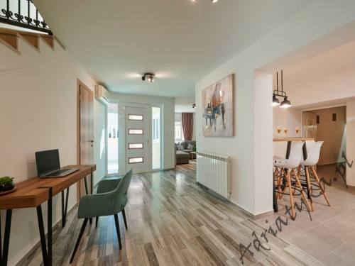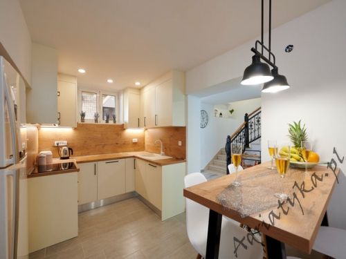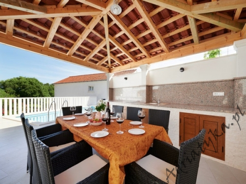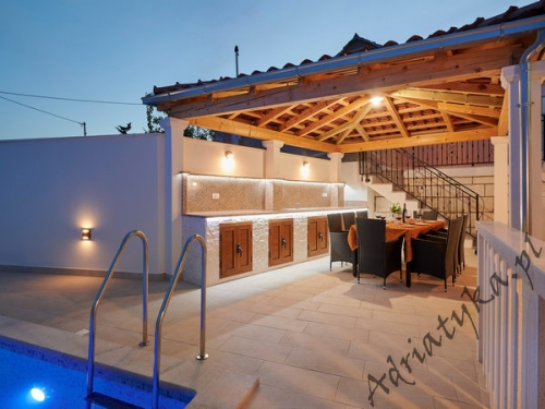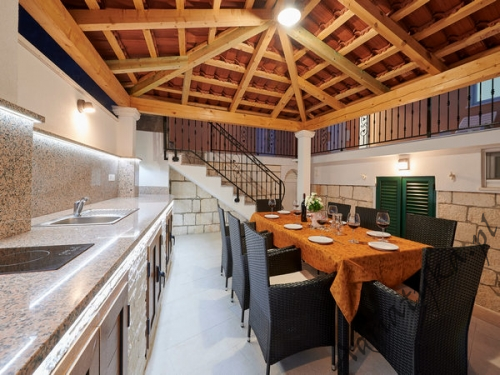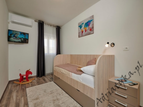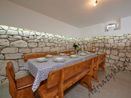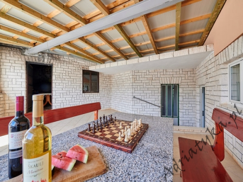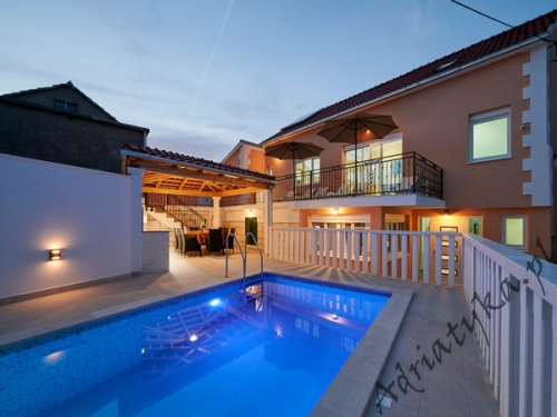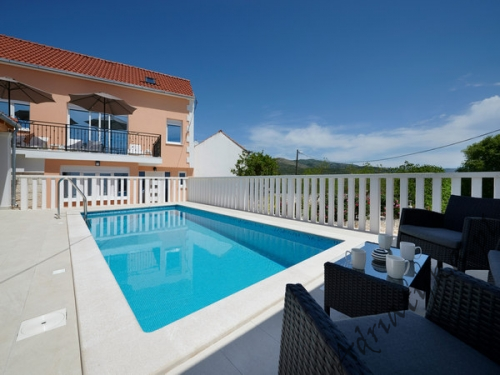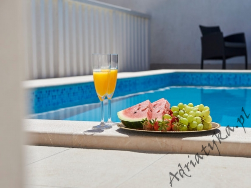 Cena od: 200€ za dobę* * podana cena jest ceną minimalną. Pełny cennik na dole oferty.  Informacje dotyczące kwatery Zapraszamy do komfortowego domu wakacyjnego położonego w spokojnej miejscowości Gustirna, w sercu Dalmacji Środkowej. Dom doskonale sprawdzi się dla rodzin z dziećmi lub grup przyjaciół szukających prywatności, komfortu i prawdziwego dalmatyńskiego klimatu. Wyposażenie kuchni: naczynia do przygotowywania i serwowania jedzenia i napojów, sztućce w odpowiedniej ilości, zmywarka, bardzo duża lodówka (360 L), duża zamrażarka (100 L), elektryczna kuchnia, piekarnik, czajnik elektryczny, mikrofalówka, ekspres do kawy, toster, pochłaniacz powietrza (okap kuchenny). Wyposażenie łazienek: kompletne, kabiny z prysznicami, prysznice.  Informacje o pokojach Ilość pokoi: 5 + dwa duże pokoje dzienne, łączna liczba łóżek w pokojach: 5, liczba łóżek dwuosobowych: 3, liczba łóżek jednoosobowych: 2. Łóżeczko dla małego dziecka dostępne na życzenie (wliczone w cenę wynajmu).  Odległości Odległość do przystanku autobusowego 3 km, odległość do stacji kolejowej 30 km (Kastela), odległość do najbliższego portu lotniczego 20 km Split (Trogir), odległość do przystani promowej 40 km (Split), odległość do hałaśliwej (ruchliwej) ulicy 3 km, odległość do kantoru 3 km (Marina), odległość do bankomatu 3 km (Marina), odległość do restauracji 3 km, odległość do sklepu spożywczego 3 km, odległość do najbliższej stacji benzynowej 15 km.  PlażaŁadna kamienista / żwirowa plaża, oddalona od obiektu o 4 km, odległość do morza wynosi 3 km. W najbliższej okolicy znajduje się wiele innych, bardzo ładnych plaż.  Inne uwagi Goście mają do dyspozycji internet, basen, prywatny parking (na 2 auta), bardzo duży taras (obok basenu), balkon z widokiem na basen i sąsiednie budynki, stoły i krzesła na tarasie i balkonie, leżaki, parasole, meble ogrodowe, specjalne (zadaszone) miejsce z murowanym grillem na którym można przygotować rybne i mięsne specjały dalmatyńskiej kuchni przy kieliszku dobrego, domowego wina i rakiji. Posesja jest ogrodzona. Wymiana pościeli i ręczników co 7 dni. Internet: usługa wliczona w cenę wynajmu.  Cennik